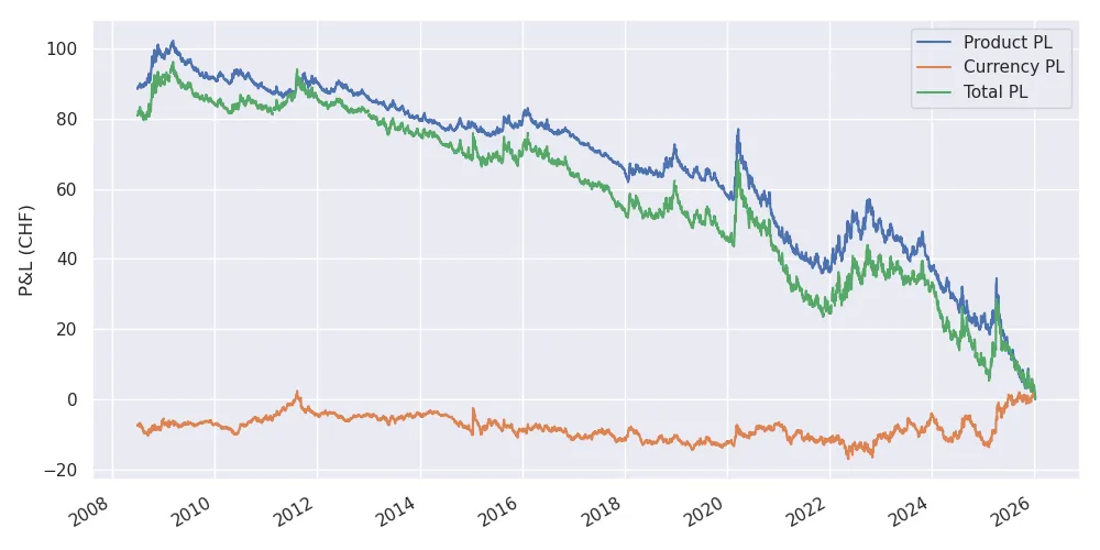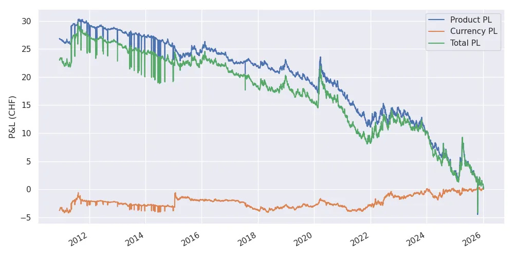 Product, Currency, and total PL on January 10, 2026, for the acquisition of one unit of VT stock in CHF at the given date in the past.
